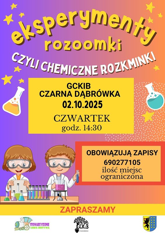 Już w czwartek zapraszamy dzieci do świata eksperymentów ! Nie zabraknie slime i chemicznych ciekawostek Uwaga obowiązują zapisy ! Liczba miejsc ograniczona