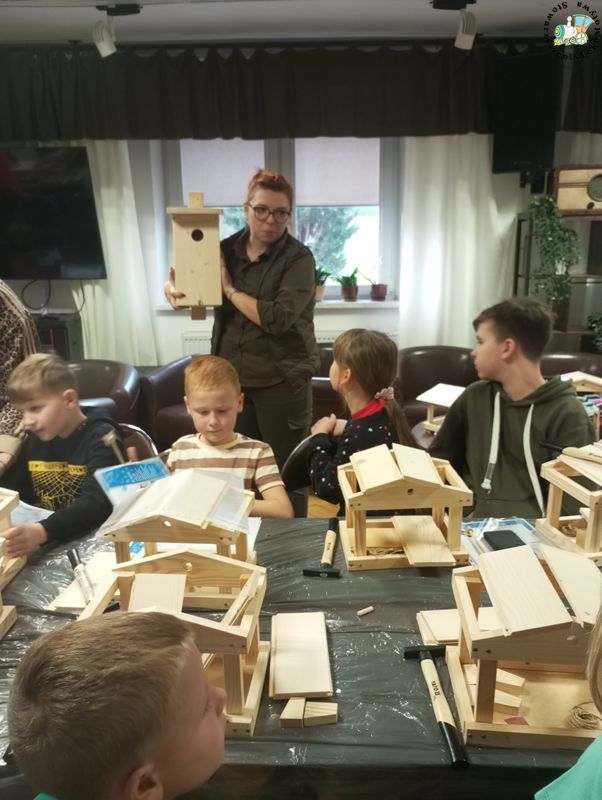 Zbijanie, szlifowanie, malowanie, oj było pracowicie Zajęcia poprzedziliśmy spotkaniem z Panią Agatą z nadleśnictwa Łupawa, która wprowadziła nas w ekologiczny świat Poznaliśmy ptaki, które zimują w Polsce, wiemy czym je dokarmiać i dlaczego to jest takie ważne. Dziękujemy serdecznie za tą wiedzę.