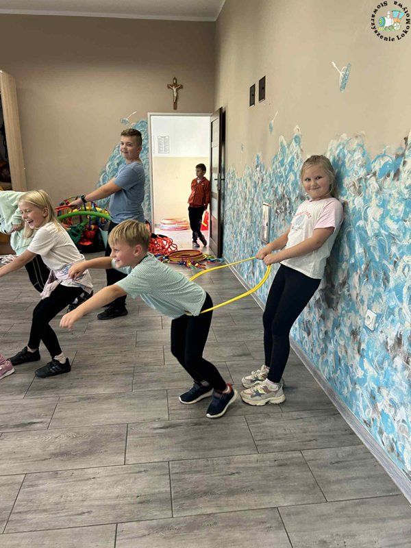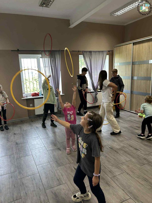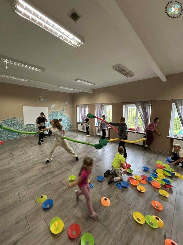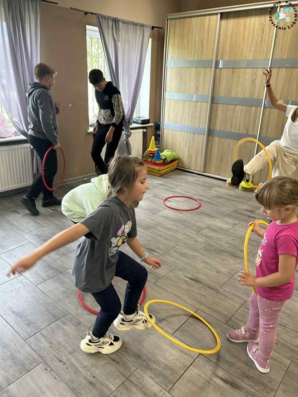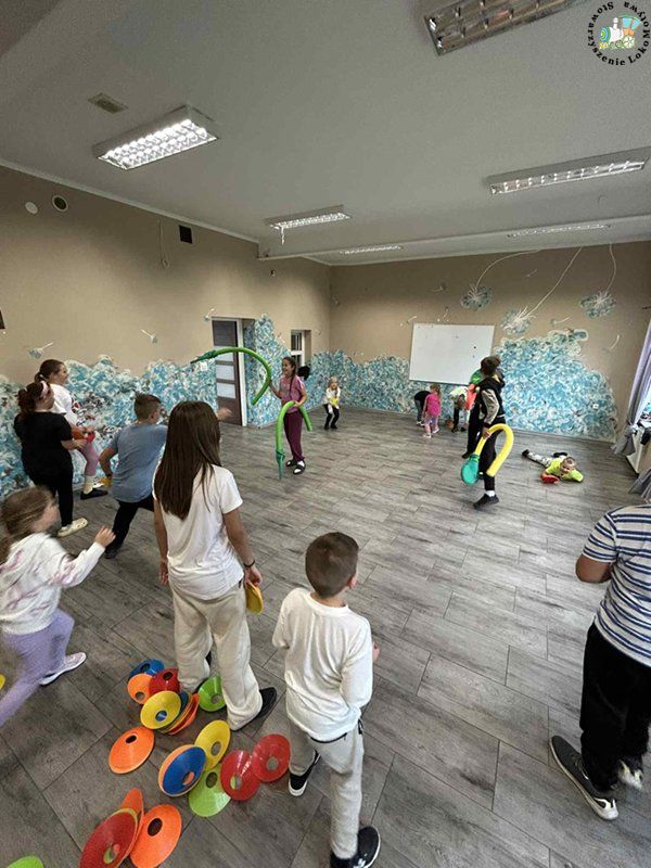 Dzieci ćwiczyły przeskoki, doskonaliły koordynację ruchową, a także uczyły się współpracy i zdrowej rywalizacji.