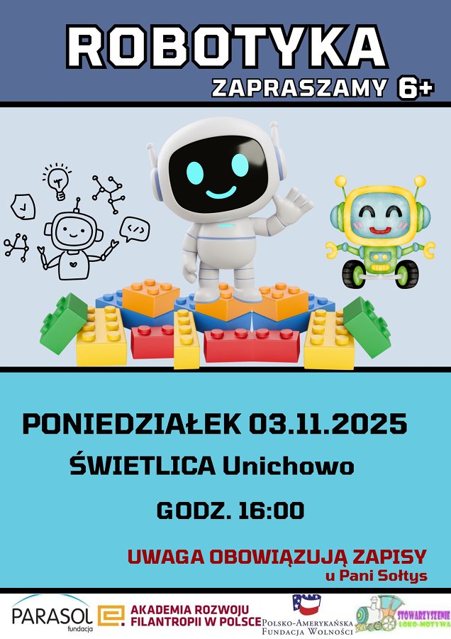Hej Unichowo, już w poniedziałek robotyka, zapraszamy do zapisów!